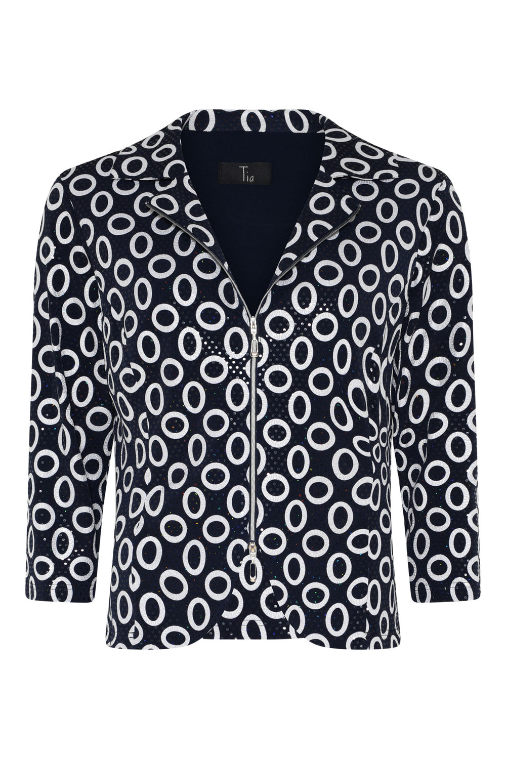 Tia 77600-7796-69 Navy Circle Print Sequin Shimmer Zip Front Jacket